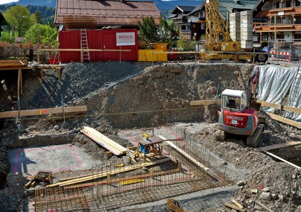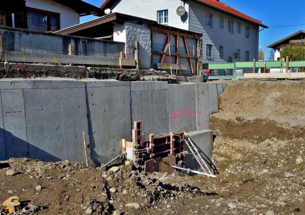 Aufgrund der Baukörpergröße mit zwei Häusern, verbunden über einen Zwischenbau und Tiefgarage, waren spezielle Gründungen mit Schotterpfählen erforderlich. Diese Schotterpfähle werden mit einer Spezialmaschine nach Bodenerfordernissen 6 – 10 m tief in den Boden hinein durch Einrütteln und Verdichten von Schotter hergestellt und sind dann die Auflage für die Betonfundamente.