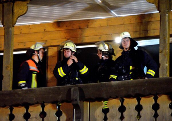 Wir hatten die Häuser für eine Übung der Freiwilligen Feuerwehr Oberstdorf zur Verfügung gestellt, die somit die seltene Gelegenheit hatte, unter realistischen Bedingungen wie Durchbruch durch das Blechdach, Wandeinschlagung zur Befreiung eingeschlossener Personen usw. proben zu können. Am Ende der Übung war der Feuerwehrkommandant, Herr Vogler, hoch zufrieden, da insbesondere der Nachwuchs bei dieser Übung praktische Erfahrungen sammeln konnte.