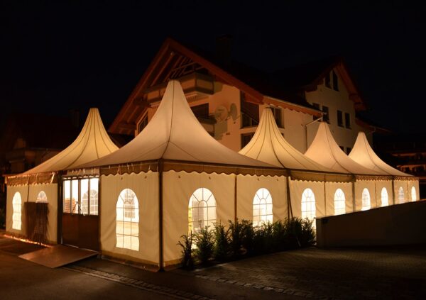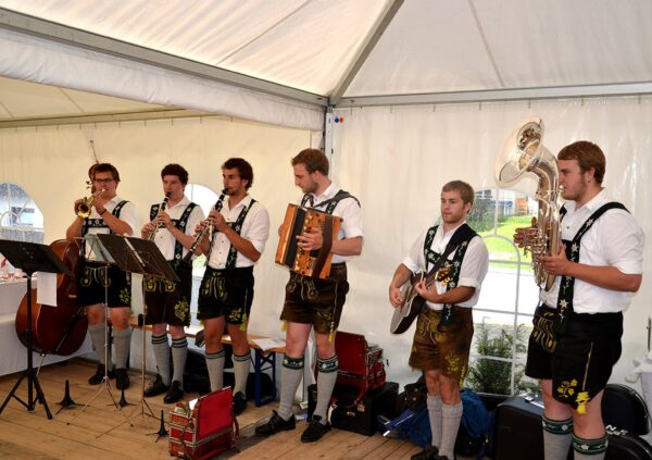 Familie Oehlschläger war bereits in der hektischen Endbauphase im letzten Jahr zum 15. Dezember in den Adlerhorst eingezogen, um Ihre Weihnachtsferien und das Neue Jahr in Oberstdorf zu begehen. Zur Unterhaltung nach dem Abendessen spielten dann die Starzlachschwung auf. Die letzten Gäste verließen erst nach Mitternacht das erleuchtete Festzelt. Eine gelungene Einweihungsfeier war zu Ende!