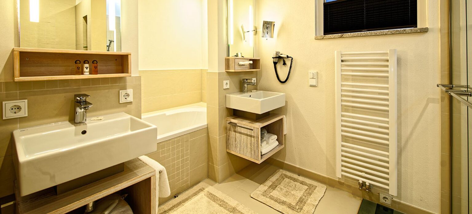 In der Herzogin Ludovika Suite wohnen Sie ebenso gemütlich wie stilvoll. Genießen Sie den Komfort Ihres exklusiv ausgestatteten Apartments.