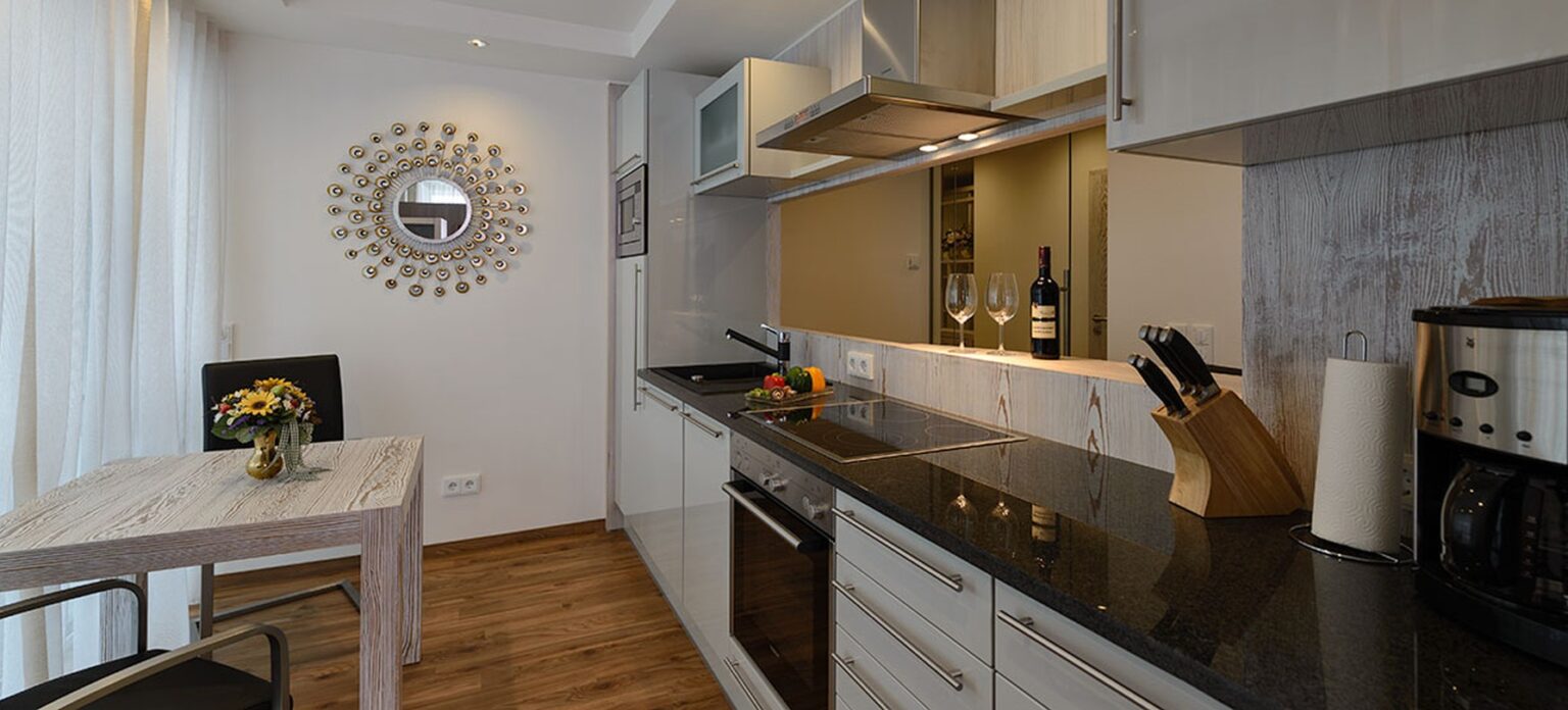 auf ein Hotelzimmer angewiesen zu sein. Außerdem wünschten wir ein Ambiente, das sich vom üblichen "Alpen-Stil" abhebt. In der Weißopal-Suite haben wir all das gefunden. Die Wohnung ist fantastisch ausgestattet - vom zweiten Fön über das integrierte Radio im Bad und die Nespresso-Maschine in der Küche ließ das Angebot keine Wünsche offen. Neben einem kleinen Schwimmbad und einer Dampfsauna gibt es in der Residenz auch genügend Abstellplätze für Fahrräder, einen Raum mit Pool-Billard sowie ein Fitnessstudio und eine Waschküche, die Benutzung von Waschmaschine und Trockner ist kostenlos. Vom Gastgeber Herrn Trautmann wurden wir herzlich empfangen und auch wieder verabschiedet. Ein rundum gelungener Urlaub und wir kommen sicherlich wieder!