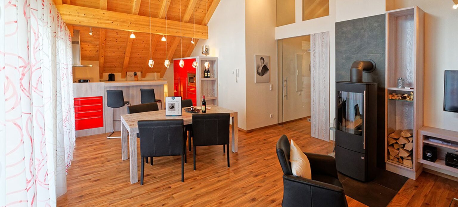 Die Rubin Suite bietet Komfort pur auf 120 m². Genießen Sie behagliche Stunden auf dem sonnigen Südbalkon oder am Kamin.