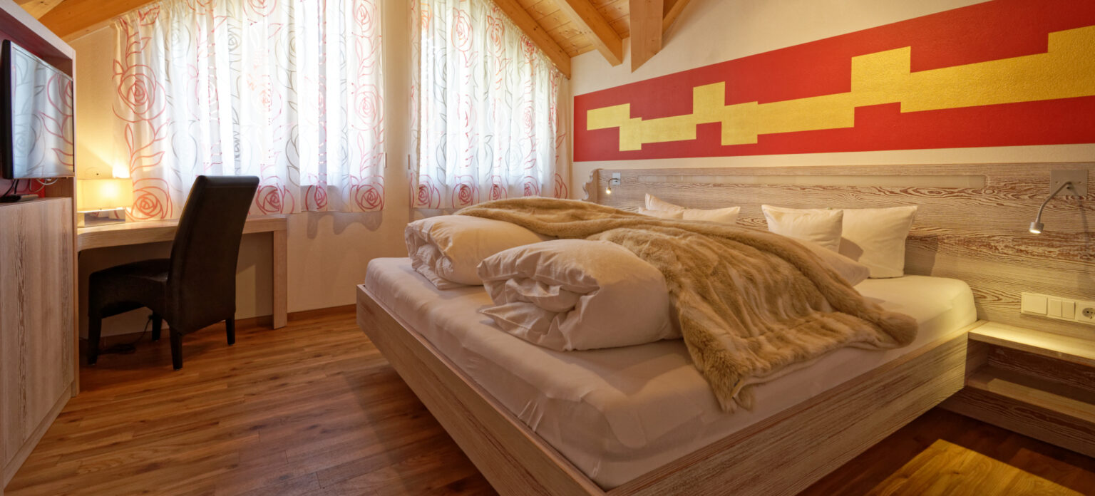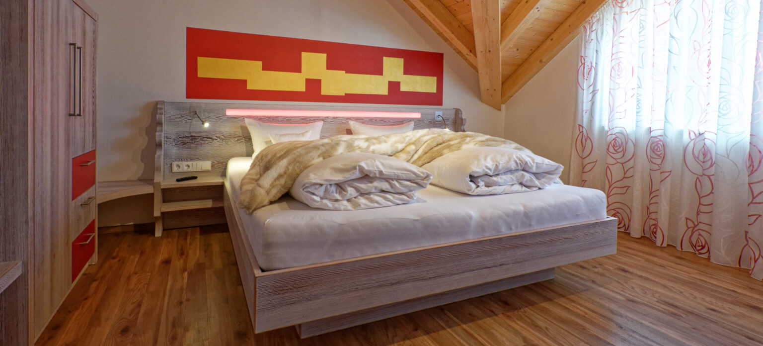 In unserem Pfötchenparadies in der Residenz 2 ist auch Ihr Vierbeiner willkommen. Die Rubin Suite verwöhnt Sie mit einer exklusiven Einrichtung im modernen Alpenländischen Stil, abgerundet mit stilvollen Details im Karminrot des strahlenden Rubin. Zur Ausstattung des 4-Personen-Apartments gehören neben hochwertigen Schreinermöbeln auch ein Kaminofen und eine Fußbodenheizung. 120 m² Wohnfläche mit zwei Schlafzimmern und zwei Bädern bieten höchsten Komfort. Beginnen Sie Ihren Tag auf dem wunderschönen Südbalkon mit Ausblick oder entspannen Sie in Ihrer eigenen Sauna.