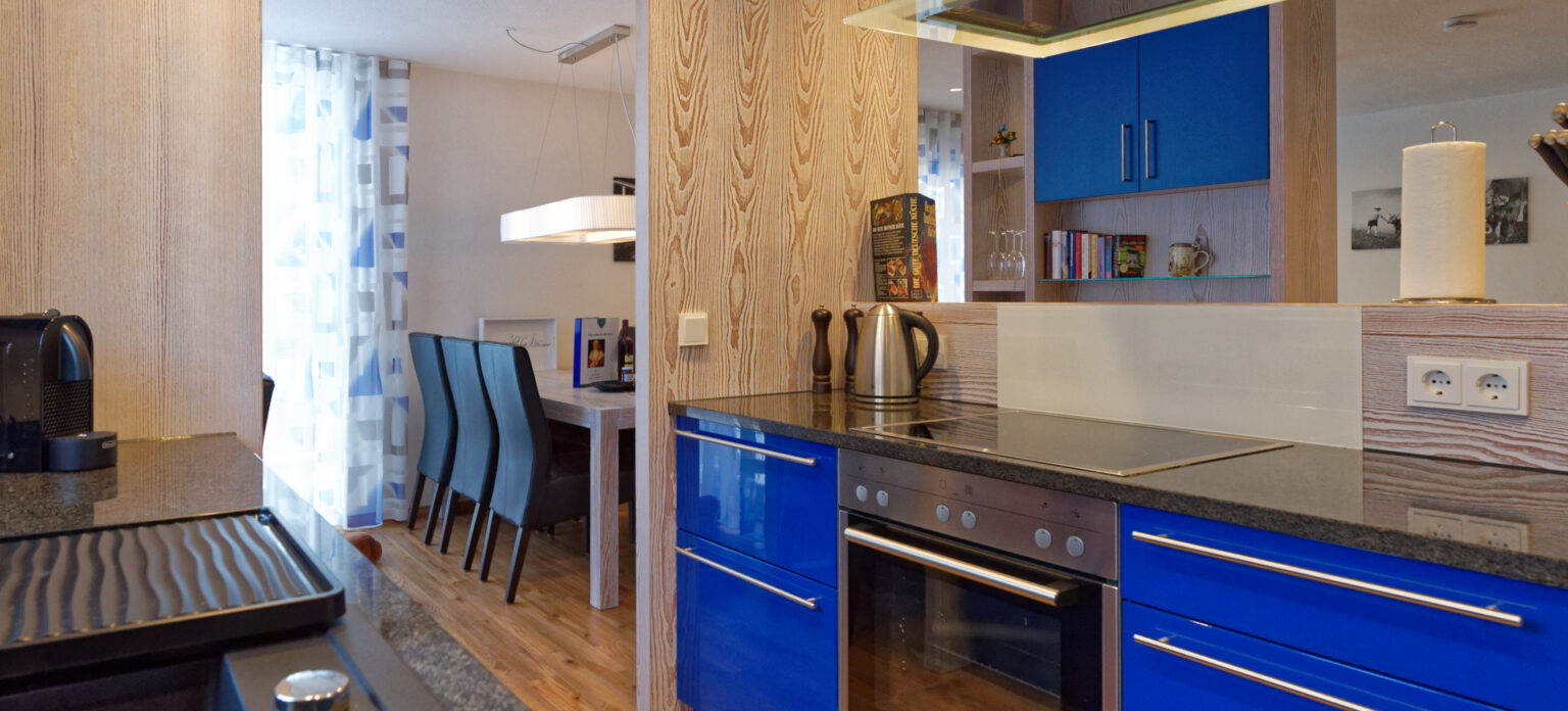 In der hochwertig ausgestatteten Küche kommen Sie zum gemeinsamen Dinner zusammen. Zum Abschluss genießen Sie einen Espresso aus Ihrer Nespressomaschine.