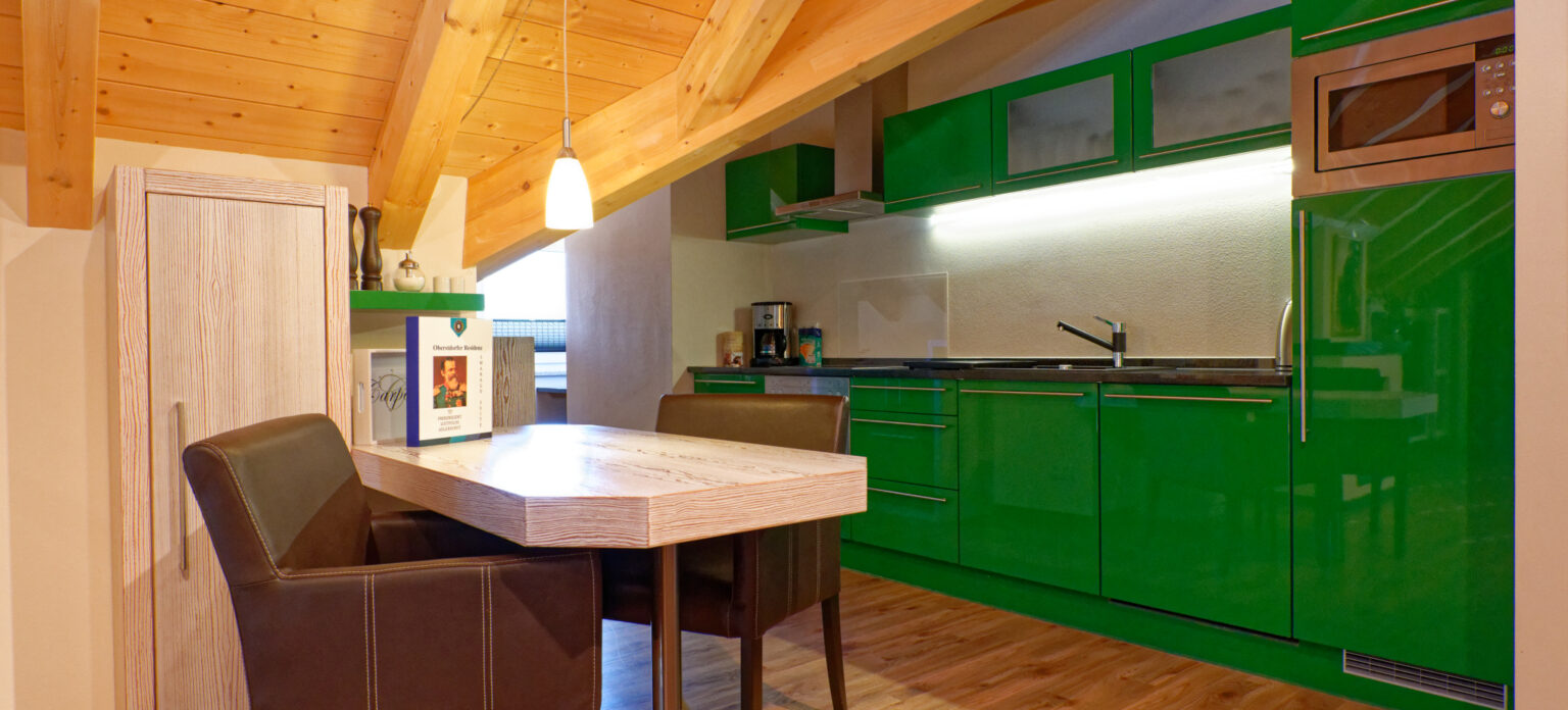 Die liebevoll dekorierte Küche lädt ein zum gemeinsamen Dinner. Die Küche ist komplett ausgestattet mit Spülmaschine, Kaffee- und Nespressomaschine.