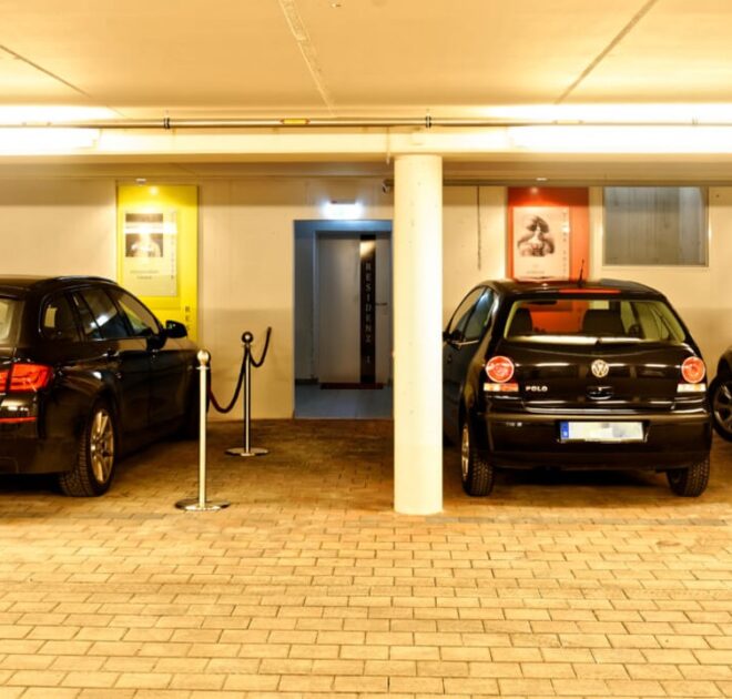 Die Oberstdorfer Residenzen verfügen über großzügig ausgelegte Tiefgaragen, um ein einfaches und stressfreies Ein- und Ausfahren sowie Parken zu gewährleisten. Die Parkplätze sind den Ferienwohnungen beziehungsweise Suiten zugeordnet.